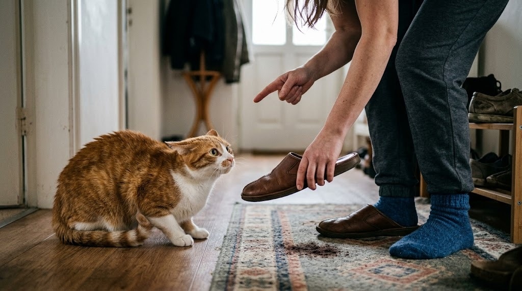 Она объяснила: регулярное «наказание» кошки по схеме «нашёл - принёс - потыкал» создаёт у животного тревогу возвращения хозяина. Кошка не понимает, за что. Но она начинает ожидать неприятного каждый раз, когда вы появляетесь.