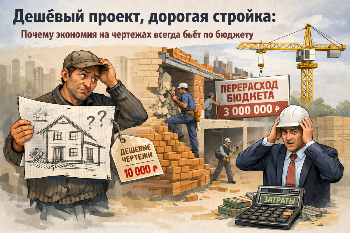 Сначала заказчик выигрывает несколько процентов на договоре с проектировщиком. А потом теряет в разы больше на стройке — на переделках, остановках работ, допах, новых закупках, срочных изменениях решений и срыве сроков.