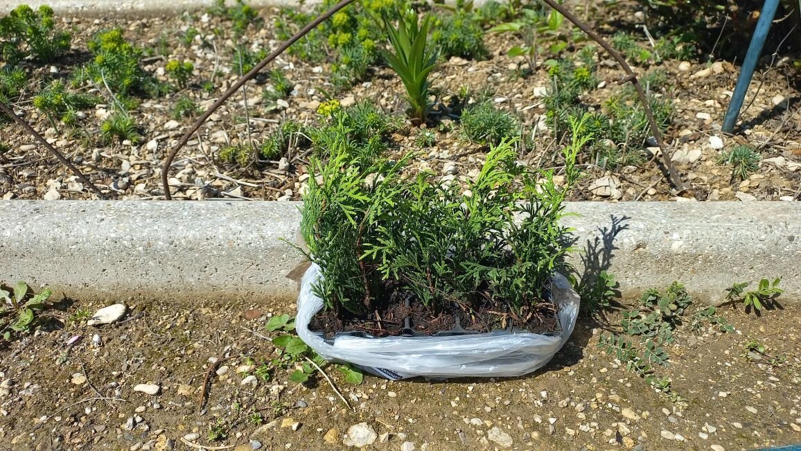 Правда, растения пока совсем крошки — не больше 10 см. Я это знала заранее, так что не расстроилась. Да, придётся подождать на пару лет дольше, пока они вырастут. Но я готова. Терпение и труд, как говорится, и из крошечного росточка получится роскошная изгородь.