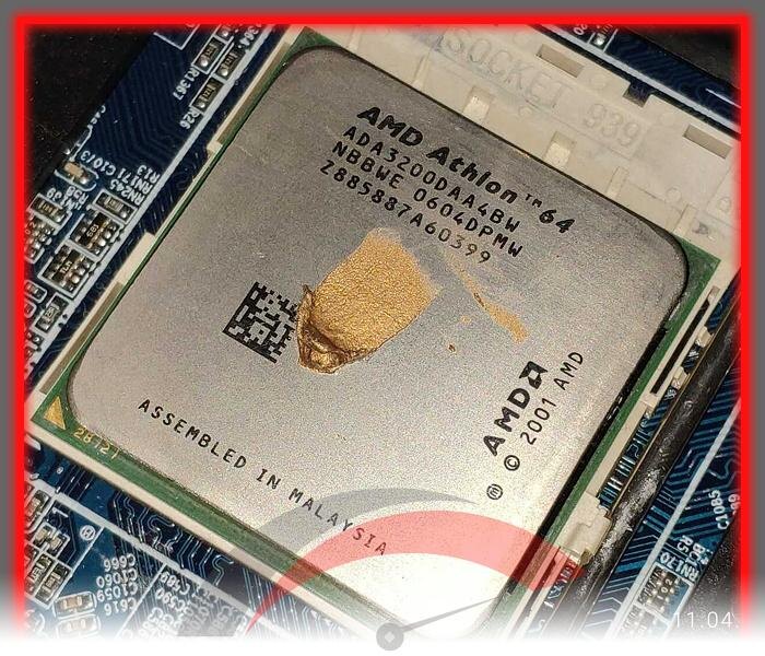 А потом я нашёл системную плату Gigabyte GA-K8N51GMF-9 с процессором AMD Athlon 64 ADA3200DAA4BW. Я думал, эта система нерабочая, но она оказалась полностью исправной. В чём уникальность этой системы, из-за которой я прервал тестирование нового проекта? Всё верно: это довольно редкая система Socket 939, да ещё и с процессором Athlon 64. В наличии 4 слота DDR1 в двухканальном режиме работы. Гораздо более распространённая платформа Socket 754 обладает лишь одним каналом памяти DDR1. Разумеется, s754 и s939 — это платформы с интегрированным в процессор контроллером памяти.
