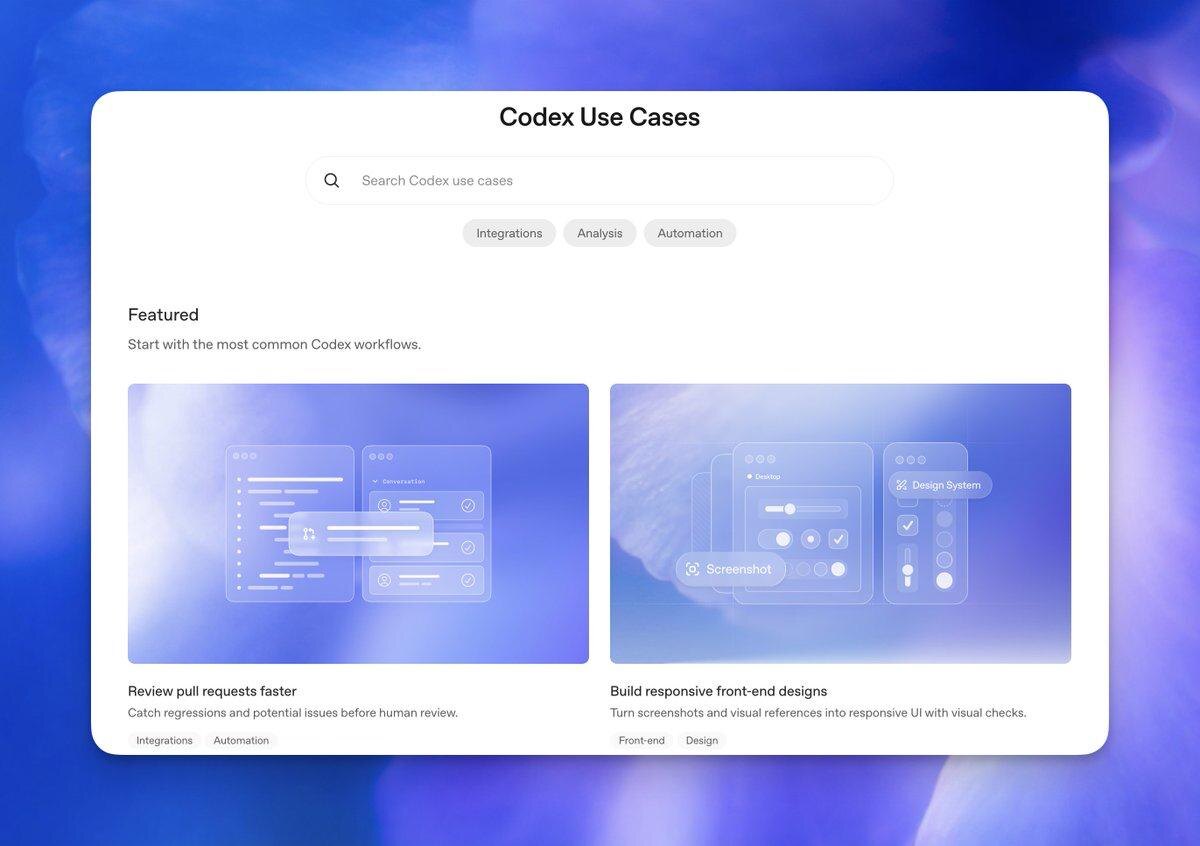 OpenAI недавно обновила свою галерею практических кейсов с Codex, добавив новые сценарии использования. Теперь даже те, кто не является разработчиком, могут легко работать с кодовыми агентами благодаря подробным инструкциям: какие промпты и плагины использовать в разных ситуациях. Лучший способ начать ориентироваться на реальные примеры и сценарии использования, представленные в галерее. Это помогает быстро понять, как применять Codex в своих задачах и интегрировать его в рабочие процессы. Изучать тут @bykorolev