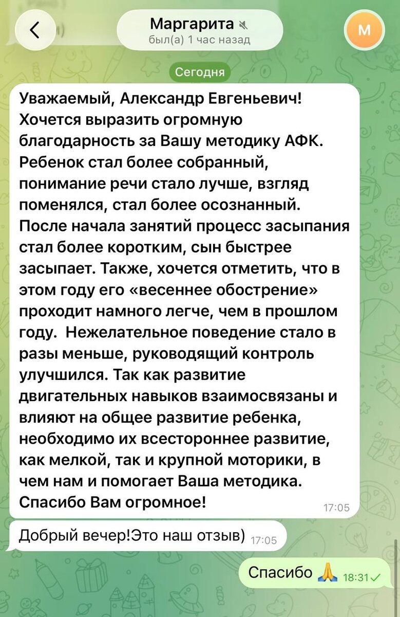 Иногда родители пишут такие сообщения, после которых хочется остановиться и ещё раз сказать: 👉 всё, что происходит с ребёнком — закономерно. Не «чудо». Не «совпало». Не «перерос». А результат системной работы. 📩 Вот один из недавних отзывов: Обратите внимание, что изменилось: — ребёнок стал более собранным — лучше понимает речь — взгляд стал осознаннее — быстрее засыпает — поведение стало спокойнее — даже «весеннее обострение» проходит легче Это не разные проблемы. 👉 Это всё — работа нервной системы. ❗️Главное, что важно понять: Мы не «учим ребёнка сидеть» и не «заставляем выполнять задания» Мы: ✔️ выстраиваем базу через тело ✔️ даём опору нервной системе ✔️ убираем перегруз ✔️ формируем состояние, из которого возможно развитие И уже из этого появляется: речь, внимание, поведение, контакт. Именно поэтому: 👉 изменения идут сразу в нескольких сферах Сейчас я набираю новую группу родителей на онлайн-занятия по нейросенсорной АФК 📅 Старт — 1 мая 👶 Возраст: 3–7 лет (