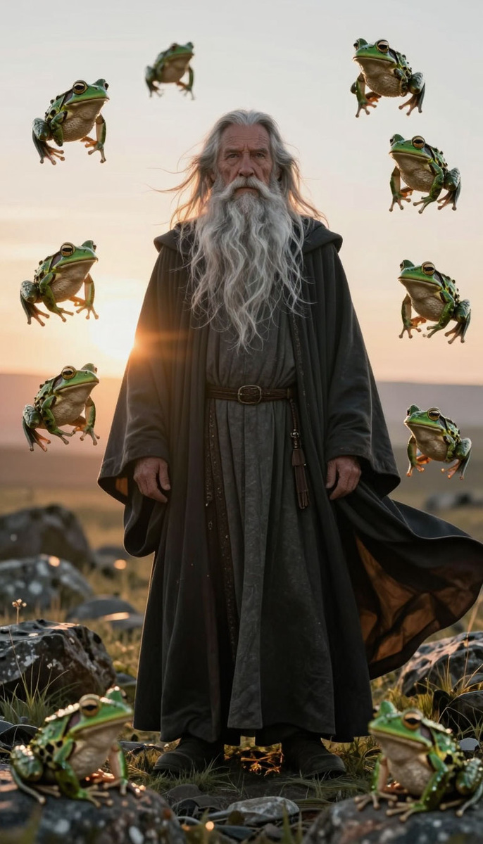 Вместо дождя из конфетти, который должен был кружиться на потеху горожанам, над башней Исскуств разверзлась воронка, из которой хлынули гигансткие жабы,размером с годовалого телёнка. Они падали на крыши, на площадь, громко квакали, пугали горожан и чудом никого не пришибли.