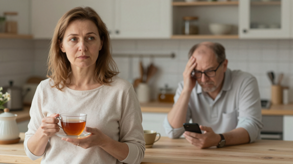 Я ушла в комнату. Села на край кровати. Чай в кружке уже остыл. Я смотрела на него и думала: вот она, та самая минута, о которой подруги шепчутся на кухнях. О которой пишут в журналах для женщин старше сорока пяти. Минута, когда привычный человек становится чужим.