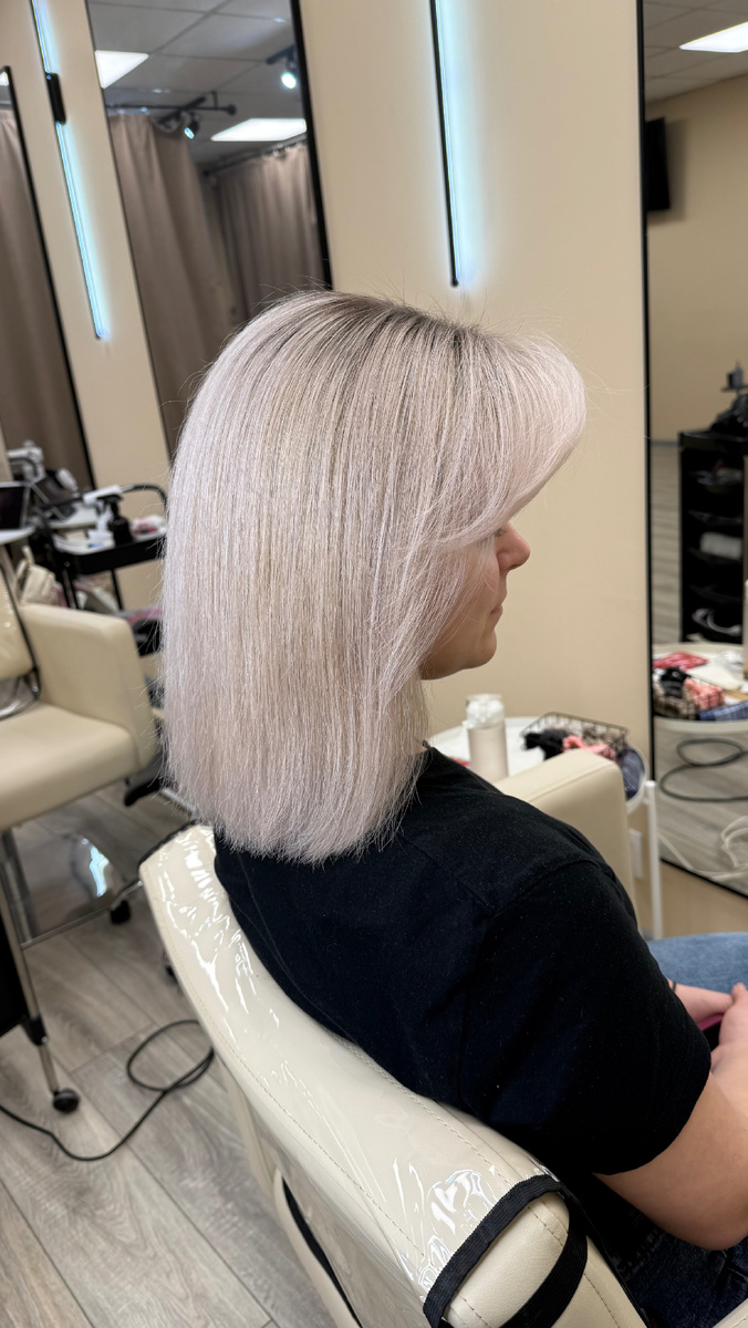 Ко мне пришла клиентка после другого мастера. Работа была аккуратной: чистый блонд, без пятен, хорошее растяжение. Но волосы… сухие, тусклые, «пустые» на ощупь.