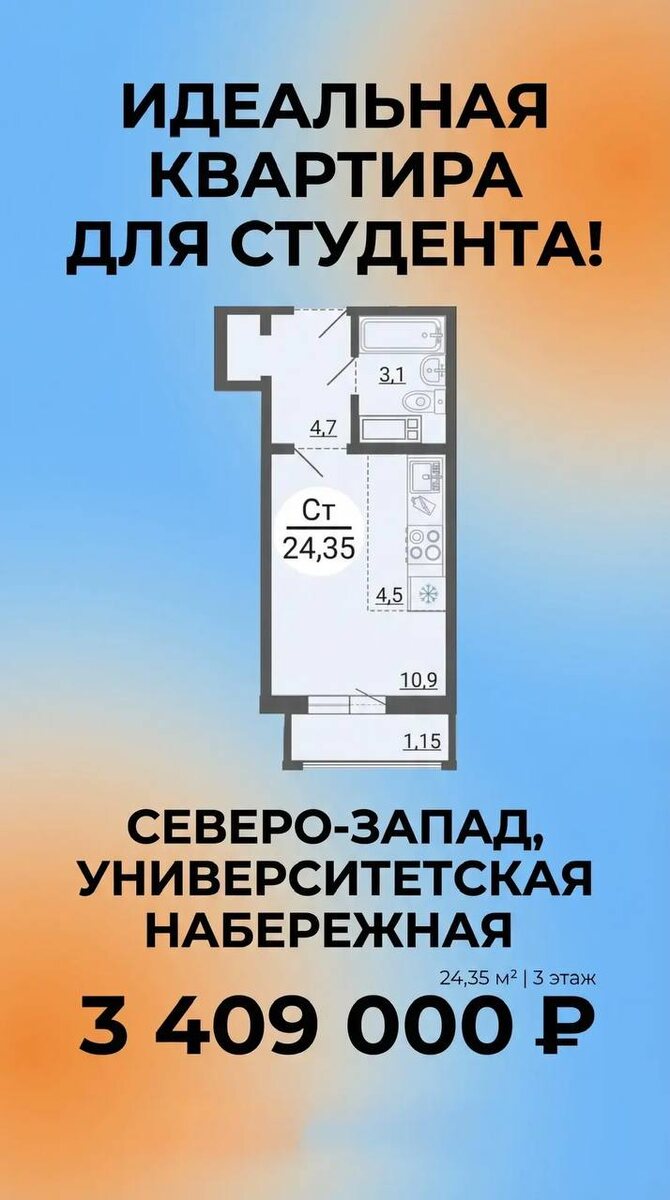 А это повод уже сейчас выбрать квартиру для своего ребенка-студента👨🏼🎓 Бесплатно подберем квартиру и поможем с оформлением! Подробнее по телефону +79226730373