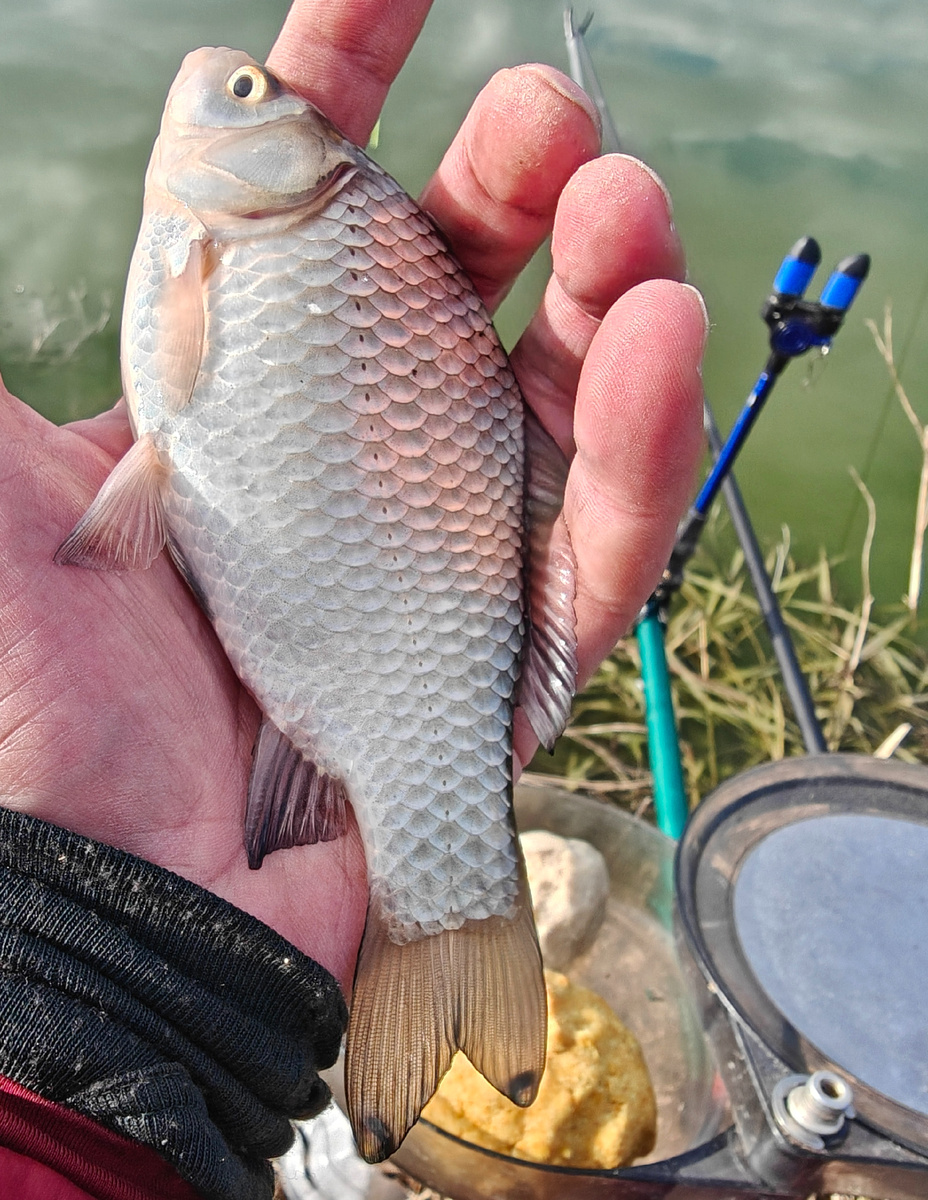 Рыбка не сильно активна. Как попало не кушает. Поклевки в массе своей нежные. У соседей с поплавками-бакенами и с червяками и батонами на крючках - почти полные нули. А у нас полавливается.