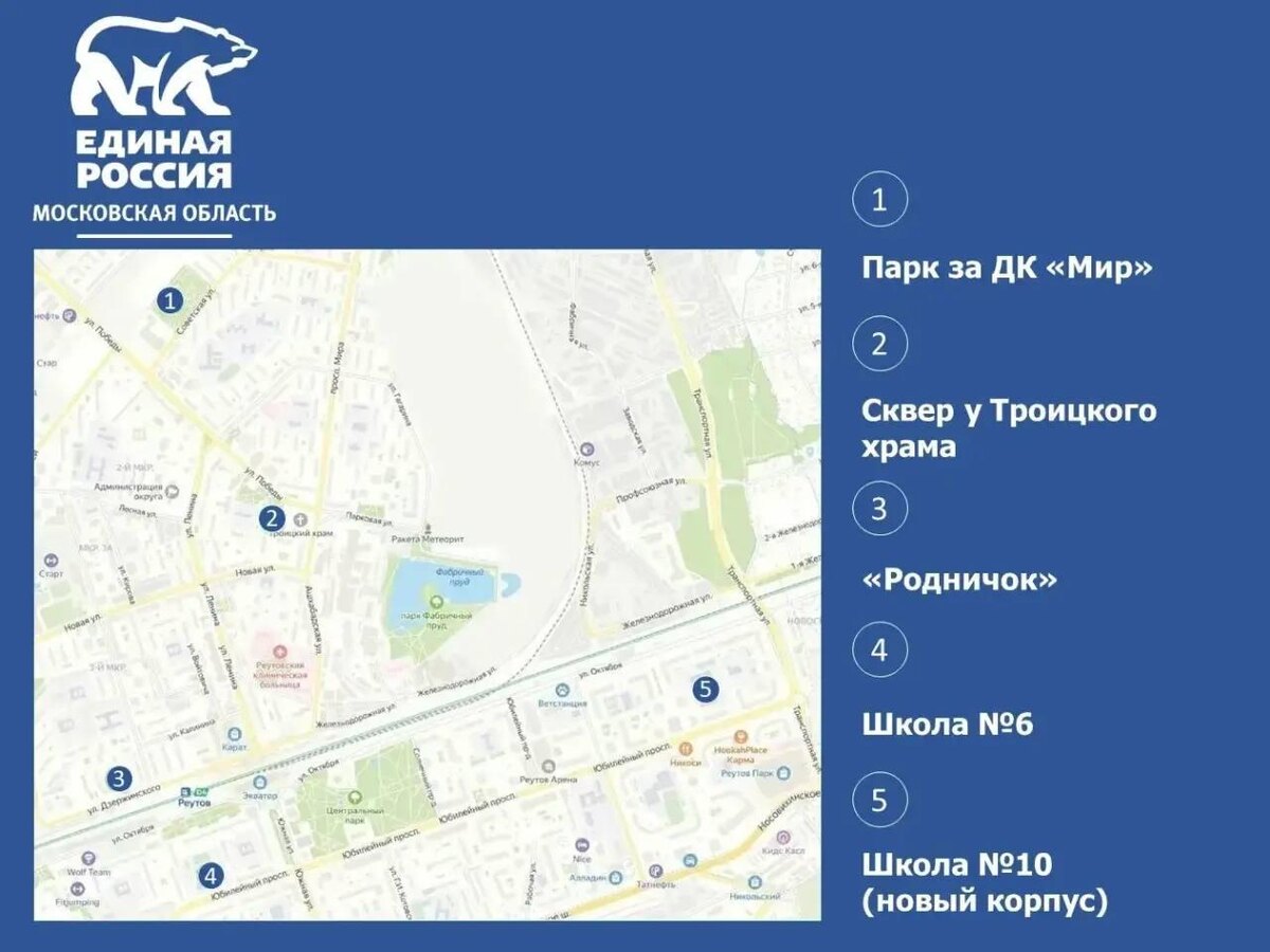 📢 Администрация города приглашает всех реутовчан принять участие в весеннем субботнике партии «Единая Россия», который пройдёт 18 апреля в 10:00 в рамках региональной акции «Месяц чистоты и благоустройства». Основные мероприятия пройдут на территории объектов Народной программы, реализация которых прошла за последние 5 лет. Весь необходимый для уборки инвентарь будет предоставлен прямо на точках, также планируется выдача чая и угощений к нему. В весеннем субботнике примут участие как однопартийцы, так и все неравнодушные жители города. Чтобы принять участие в субботнике, достаточно прийти на любую из заявленных площадок.Друзья, хорошая новость для всех, кто хочет сделать город чище! 🧹 18 апреля в Реутове состоится общегородской партийный субботник. Администрация города приглашает всех реутовчан принять участие в весеннем субботнике партии «Единая Россия», который пройдёт 18 апреля в 10:00 в рамках региональной акции «Месяц чистоты и благоустройства». 📍 Где: площадки в разных ра