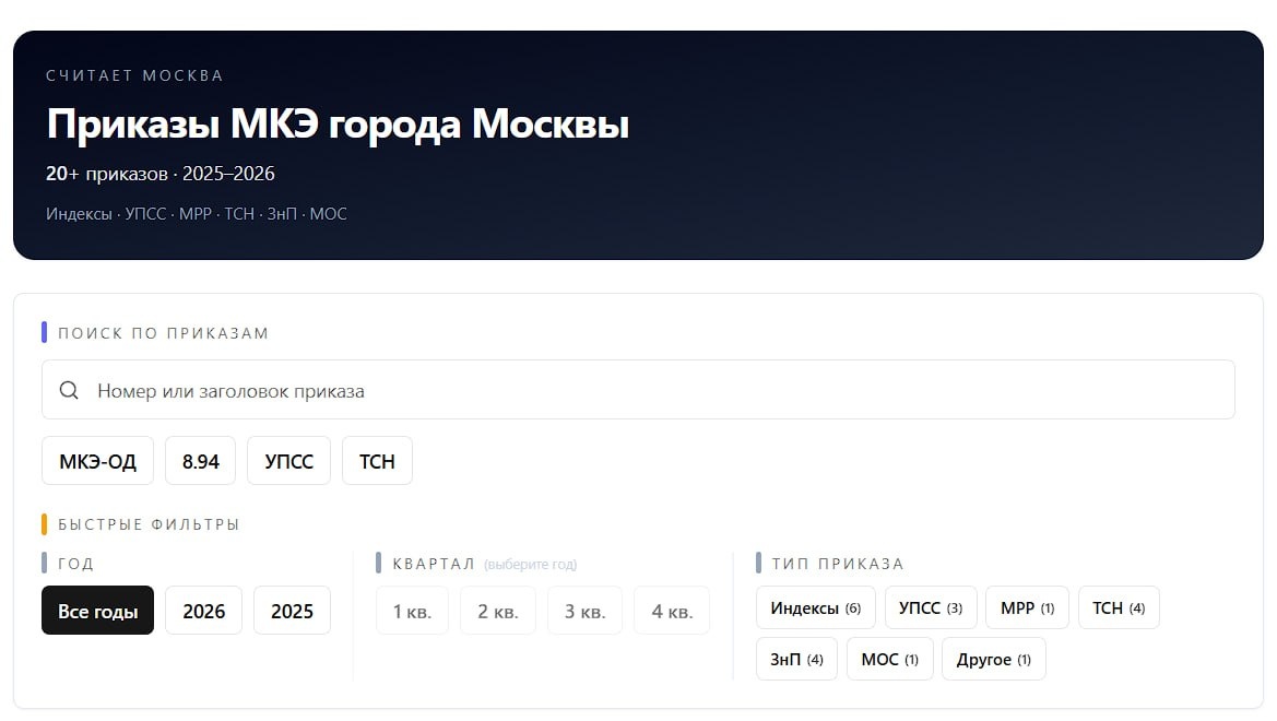 Нормативная документация Москвы. Друзья, мы запустили сервис по работе с нормативными Приказами Москомэкспертизы в режиме онлайн. ✔️Все Приказы МКЭ с ссылками на официальный источник структурированы по фильтрам и тегам: - год/квартал; - индексы (Приказы с коэффициентами); - УПСС (всё что касается этого направления); - МРР (изменения и дополнения); - ТСН (дополнения к 13 главе и нормативам ежеквартальное); - ЗнП (задания на проектирование приказы); - МОС (методики и всё, что с ними связано); - Другое (прочие документы). ✔️Можно скачать Приказ в pdf или просмотреть прямо на устройстве. ✔️Есть ИИ поиск и краткая аналитика по каждому Приказу. - примерно то, что готовлю для вас на канале, но сделанное автоматически для оперативного просмотра сути информации. ✔️Реализован режим подписки через ТГ бота на актуальные обновления. - например, как только публикуется Приказ - вы получаете личное сообщение. Не надо заходить и проверять сайт. Плюс можете быстро прочитать аналитику от нашего опер