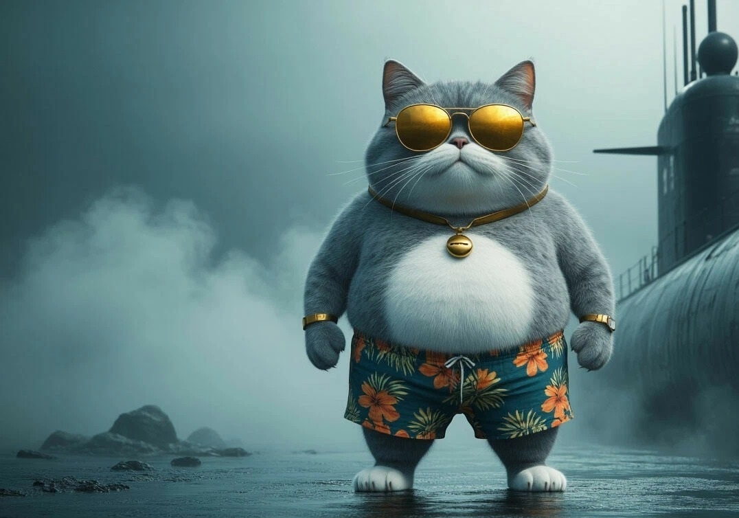 Вместо Владивостока вокруг были другие берега. Тяжёлый туман лежал над водой, сопки стояли иначе, и воздух был более суровым, будто с привкусом приключений. На дальнем склоне виднелась надпись на знаке: «Сахалин». Мася медленно надел золотые очки обратно. — Так… — сказал он, стараясь говорить спокойно, хотя усы дрожали от восторга. — Значит, отпуск начался. 🌊🕶️ Но не успел он сделать и шага по палубе, как из тумана донеслось странное: то ли рёв, то ли смех… И на воде показалась тёмная линия, будто к лодке приближалось что-то большое. Мася поправил шорты, расправил грудь и прошептал: — Ладно, Сахалин. Показывай, что у тебя тут. Тёмная линия раздвоилась и стала… цепью. Толстой, мокрой, будто вытянутой из самой глубины. Звенья стучали о борт — тинь-тинь — и каждый удар отдавался в брюхе С-56, как сердцебиение. Из тумана выступил силуэт — не человек и не зверь. Матрос, но слишком высокий и слишком пустой. Лицо было размыто, как отражение в воде, а вместо глаз — две тусклые зеленоватые то