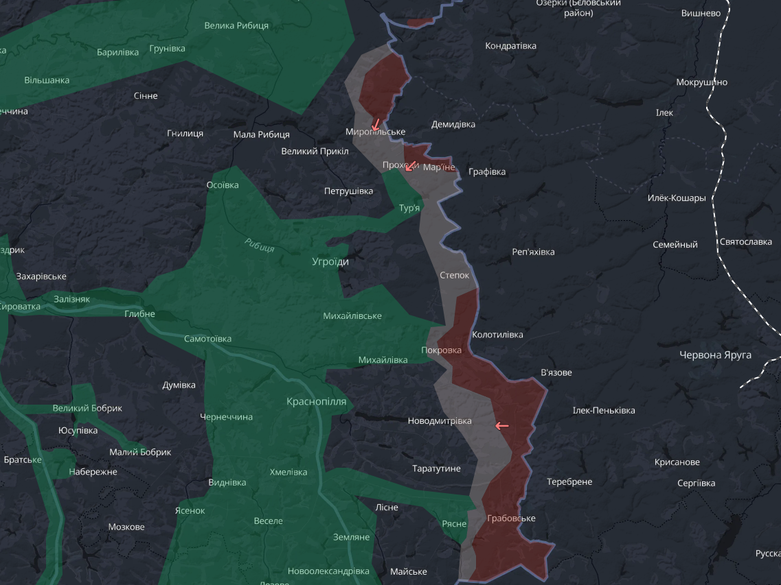 #Итоги_дня 13 апреля по состоянию на 1-00 МСК 14 апреля Видео версия на Rutube: https://rutube.ru/video/c54b2e5150dfbb032d4fae4dd0b8b0d9/ Сумский фронт: 1. Противник в очередном обновлении карты добавил нам 62 км² в Сумской области. По их данным, в сумской области у нас есть следующие продвижения: 📌Освобождено село Проходы 📌Фиксируется продвижение в лесах у Новодмитровки 📌Заявляется выход к окраинам Турьи 📌Организован единый плацдарм от Миропольского до Рясного 📌Отмечается продвижение к Великому Приколу и Петрушовке. Оскольский фронт: 1.Пришла привязка, на которой зафиксировано присутствие ВСУшников в посадке севернее Лимана. 2. Пришла привязка, подтверждающая присутствие ВСУшников в западной части Купянска в нескольких метрах внутри нашего изветного контроля. Бои за город продолжаются. 3. Пришла привязка, подтверждающая контроль северо-западнее Ставков Великомихайловский участок: 1. Пришла привязка, подтверждающая контроль между Искрой и Александроградом 2. Снова заявляется продв