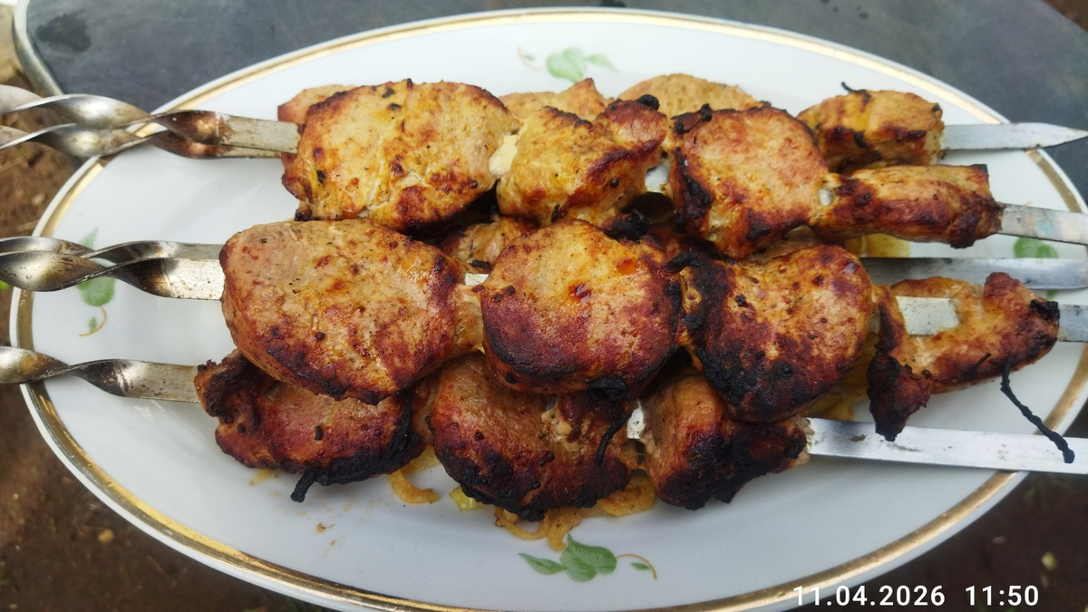 Открываем сезон, а название вполне объяснимо, приготовить не сложно как на даче так и на природе. Ветер сильный, подгорел немного, а так просто и вкусно, да и тащить с собой практически ничего не нужно. Всё в одном контейнере. Мой рецепт приготовления. Мясо нарезать порционными кусочками, лук колечками, соль и чёрный молотый перец, всё это дело перемешать. Свинина мякоть - 1 кг. Лук репка - 3-4 шт. Соль - 1 ст. ложка без горки. Перец чёрный - 1 ч. ложка. Далее свои любимые специи, взял вот такие по 1 чайной ложке: 1. горчица в зёрнах. 2. паприка. 3. приправа для свинины. 4. приправа для шашлыка. И еще 50 мл растительного масла, сок половинки лимона для кислинки. Ещё раз перемешать. Закрыть крышкой и на ночь в холодильник. Вот и всё, останется только пожарить. 👉запасайтесь терпением, хороший шашлык требует медленного обжаривания, на седых угольках, не забывайте переворачивать. Дайте время готовому немного отдохнуть, накрыть крышкой или тарелкой. Самое главное отличного аппетита и хорош
