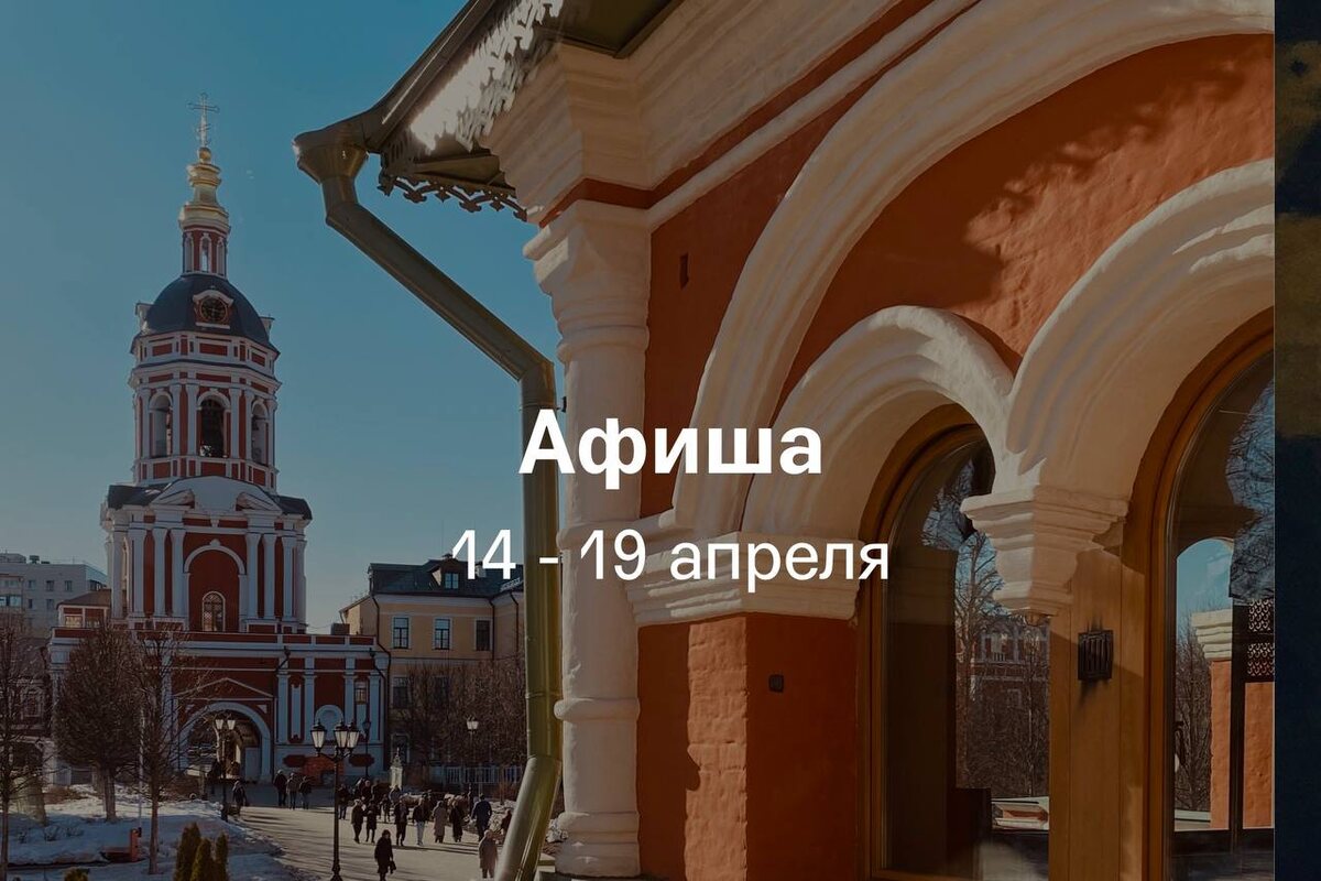 14 апреля, вторник 17:00, 18:30 Экскурсия по выставке «Волга. Москва. Нева» 15 апреля, среда 17:00, 18:30 Экскурсия по выставке «Волга. Москва. Нева» 16 апреля, четверг 17:00, 18:30 Экскурсия по выставке «Волга. Москва. Нева» 19:00 Экскурсия с Ксенией Гусевой и Юлией Дрейзис по выставке «Праздник весны» 17 апреля, пятница 17:00, 18:30 Экскурсия по выставке «Волга. Москва. Нева» 19:00 Экскурсия по экспозиции «История Москвы» 18 апреля, суббота 11:30 Завод «Кристалл»: от хлебного вина до кластера стрит-арта 13:00 К авангарду по Пресне 13:30, 15:00, 16:30 Экскурсия по выставке «Волга. Москва. Нева» 15:00 Фабрика нового человека. Экскурсия в дом-коммуну Ивана Николаева 15:00 Геометрия революции: архитектурные эксперименты Шаболовки 15:30 Экскурсия по экспозиции «История Москвы» 19 апреля, воскресенье 11:45 Итальянскій палаццо въ Москвѣ: экскурсия в особняк Гавриила Тарасова 12:00 Венгерское наследие в Москве. Экскурсия на ретроавтобусе с посещением особняка Носенкова на Поварс