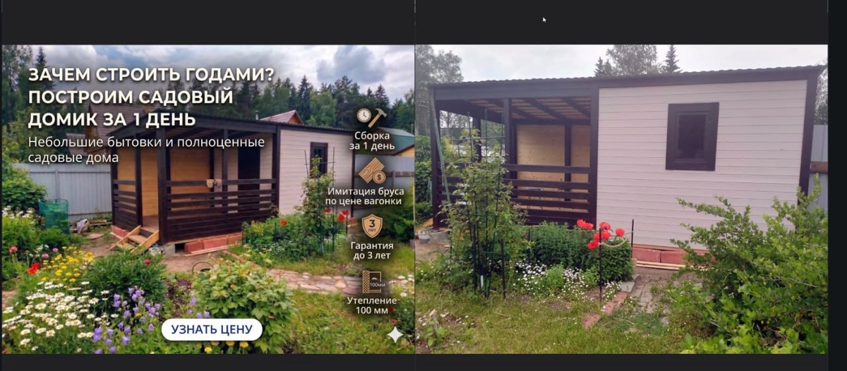 Директ. Добыть хорошие фото от клиента для рекламы - та еще задача. Фото мутные, неудачного ракурса, в кадре ведра/сапоги/мусор. Раньше отдавали дизайнеру фотошопить, исправлять геометрию, убирать мусор и садить цветочки. Стоимость 1 баннера от 600 руб до 6500 рублей и не каждый клиент был готов на доп.расходы на дизайнера. Gemini - сильно помогает, вот пример создания славного креатива из слабого исходника. #буднидиректолога