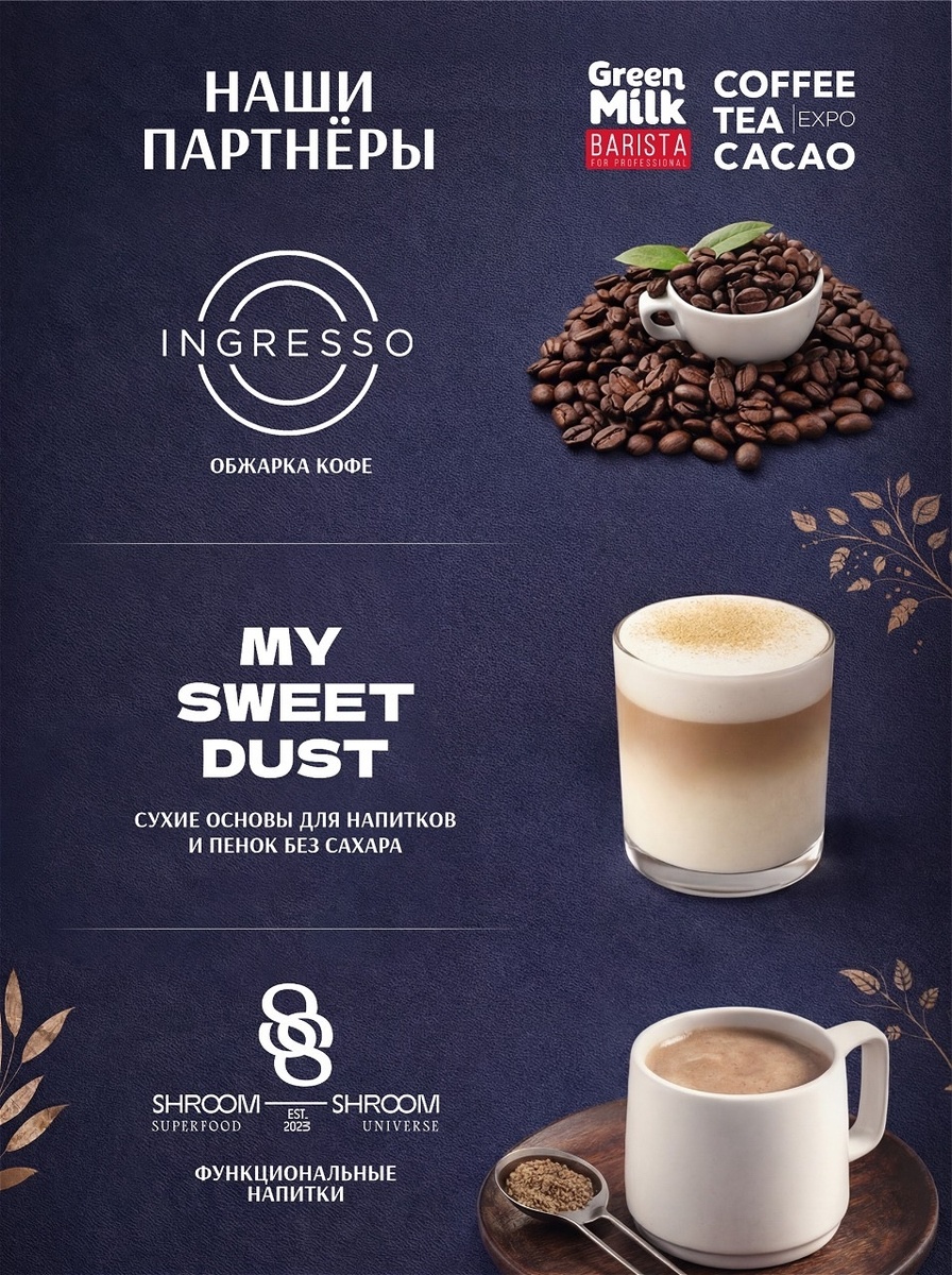 С 2017 года Ingresso Coffee радует любителей качественного кофе на Урале и за его пределами! Мы гордимся тем, что являемся одним из крупнейших обжарщиков региона. В нашем арсенале — самый современный ростер Loring, команда настоящих профессионалов и тысячи довольных клиентов, которые ценят настоящий вкус кофе. Мы предлагаем разнообразие кофе для дома, офиса и бизнеса с доставкой по всей России. 🚚❤️ Но это еще не все! Мы рады представить вам наших партнеров: ✨ My Sweet Dust — производитель сухих основ для напитков, посыпок и пенок без сахара. Идеальный выбор для тех, кто следит за своим здоровьем, но не хочет отказываться от удовольствия! 🍄 SHROOM SHROOM — компания, которая переосмысляет функциональные напитки нового поколения. Мы используем натуральные экстракты грибов и трав, а также CBD, чтобы создать уникальные напитки, которые помогают понять себя и насладиться каждым моментом. Каждый глоток — это история, вкус и состояние, которые объединяются в одном! Ждем с нетерпением вас на