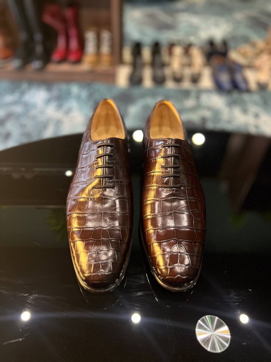 Оксфорды из кожи крокодила, цельнокройные, модель kiton от Inbespoke, индивидуально по ноге с разработкой индивидуальной колодки и