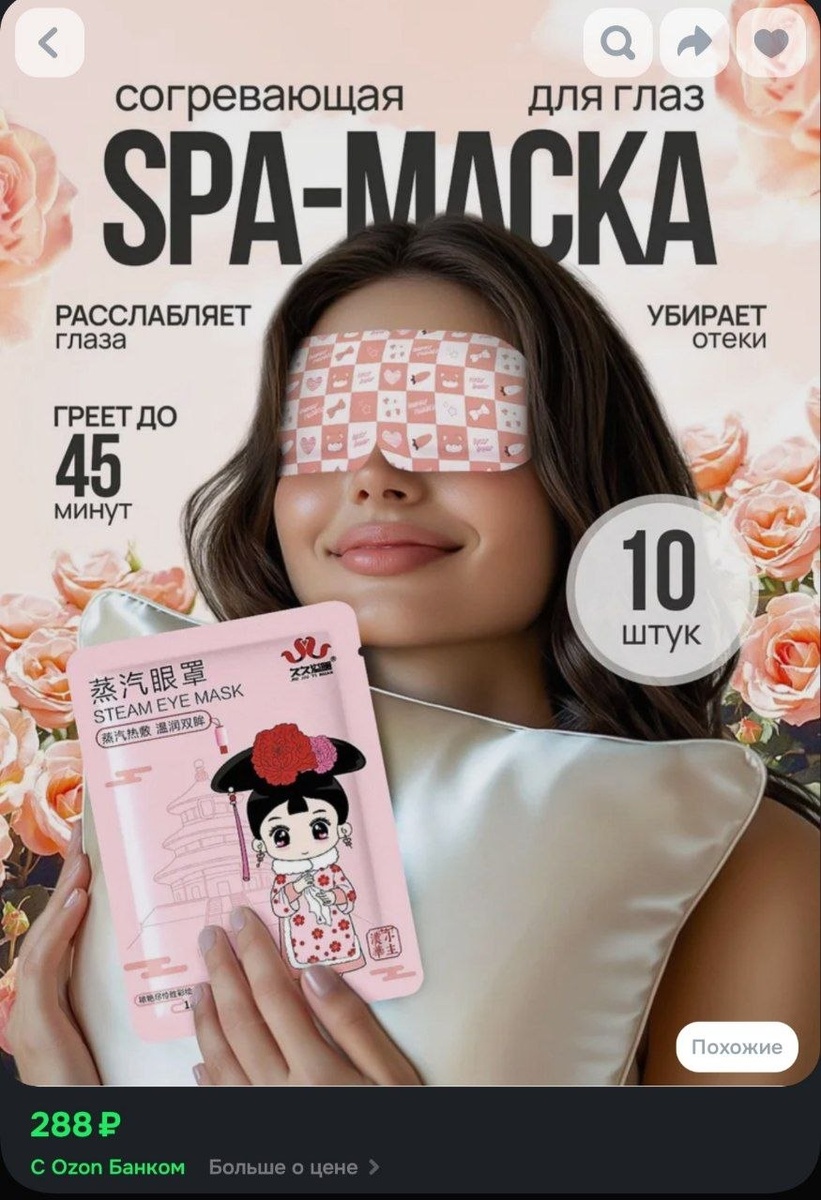 Паровая маска для глаз согревающая с запахом Розы, набор 10 шт за 288₽ *