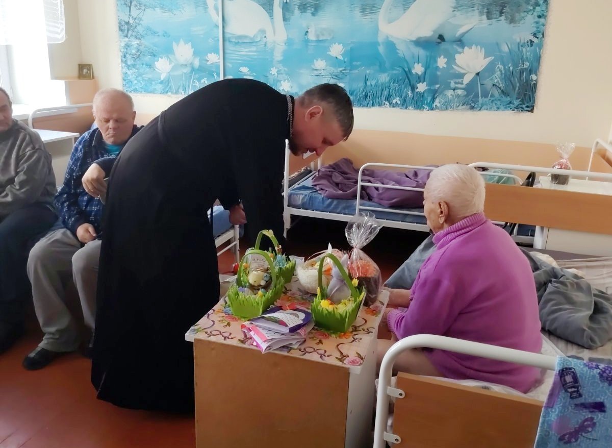 настоятель храма Святой Живоначальной Троицы д. Бытча иерей Василий Рубцов посетил больницу сестринского ухода в д. Холхолица. Отец Василий приехал, неся с собой частичку Пасхальной радости. Он прошёл по палатам и сердечно поздравил с великим праздником Воскресения Христова всех проживающих. Его слова были полны искренней любви и добрых пожеланий, напоминая о вечной жизни и неиссякаемой Божьей милости. Не остались без внимания и сотрудники больницы. Отец Василий выразил им глубокую признательность за их труд, терпение и милосердие, которые они проявляют к каждому подопечному. Также священник вручил каждому проживающему крашеные яйца, символ жизни и возрождения, передал куличи, освящённые на пасхальной службе и именные подарки собранные прихожанами Кафедрального собора Воскресения Христова г. Борисова.