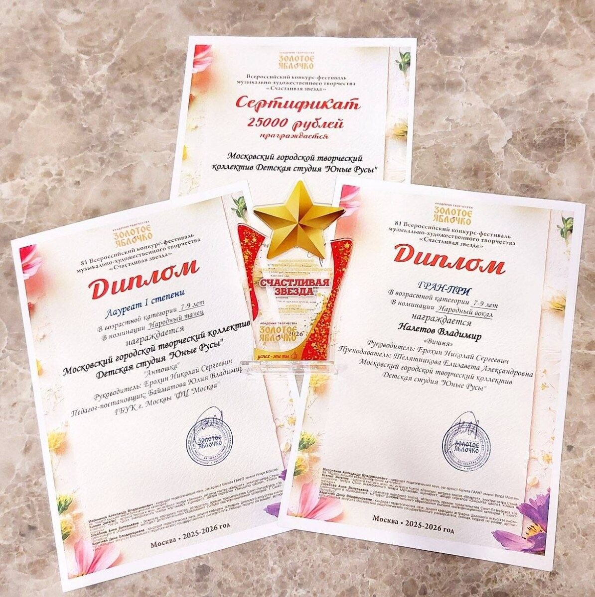 Вчера прошёл 81-й Всероссийский конкурс-фестиваль «Счастливая звезда» и наши «Юные Русы» снова среди лучших 💥 🏆 Гран-при в номинации «Народный вокал» — Налётов Владимир («Вишня») 🥇 Лауреаты I степени — танец «Антошка» Мы гордимся каждым ребёнком. Тем, как они растут. Как раскрываются. Как выходят на сцену уже не «просто детьми», а маленькими артистами. И, конечно, за этим стоит огромная работа педагогов: Руководитель студии - Главный балетмейстер Николай Ерохин. Юлия Байматова — хореография Елизавета Телятникова — вокал Спасибо за профессионализм, терпение и за ту планку, которую вы задаёте каждый день 🙏 Студия «Юные Русы» — это место, где рождаются такие результаты. Сегодня здесь занимается более 230 детей от 3 до 16 лет. И это не просто занятия — это система, в которой: — знакомятся с историей и фольклором — изучают народный вокал и хореографию — пробуют себя в актёрском мастерстве — учатся чувствовать сцену и держать внимание зрителя Но главное — здесь формируется то, что