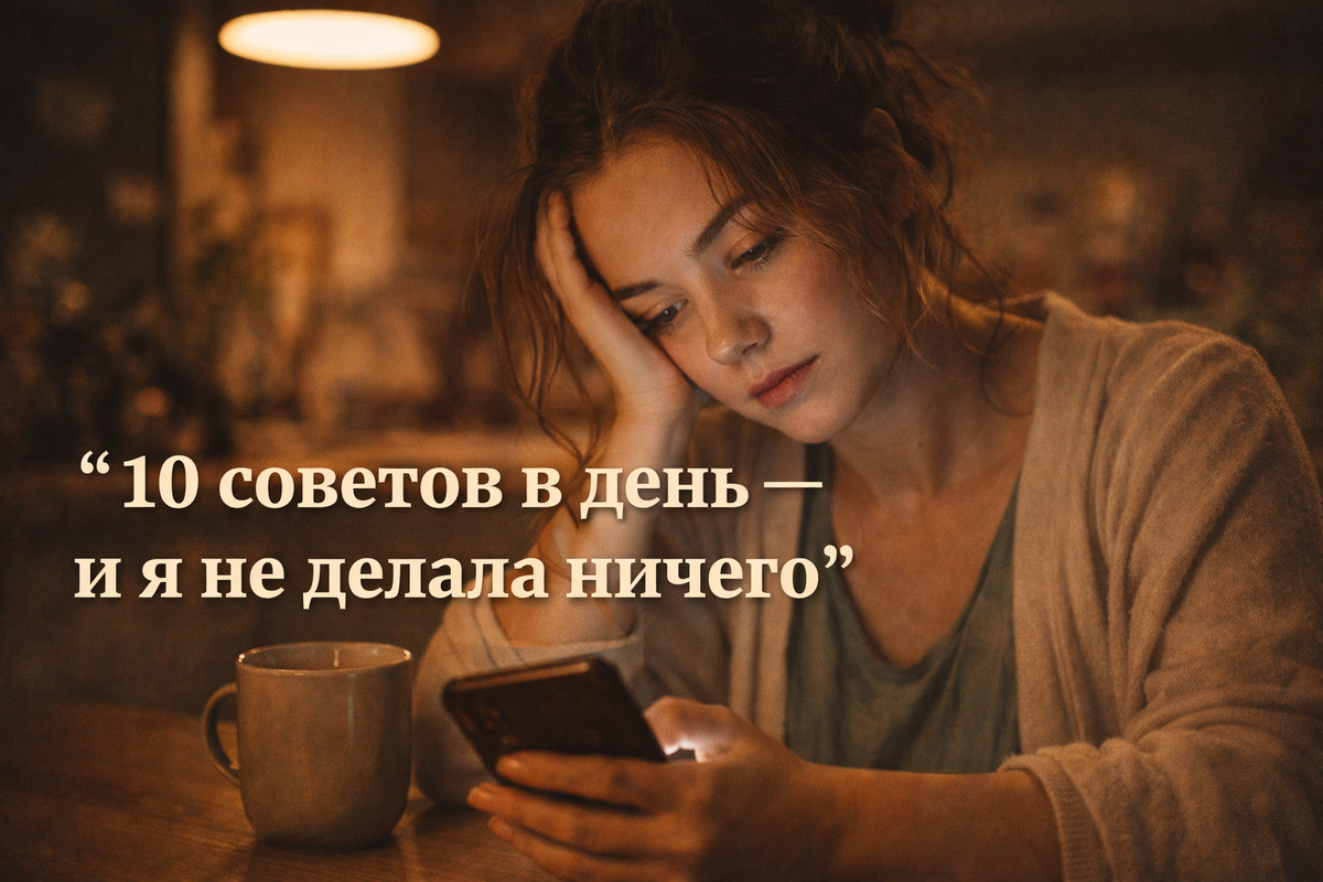 Я несколько раз замечала, что после очередной «полезной» статьи мне становилось не лучше, а хуже. Тревожнее. Неувереннее. Я начинала сомневаться в том, в чём раньше была спокойна.