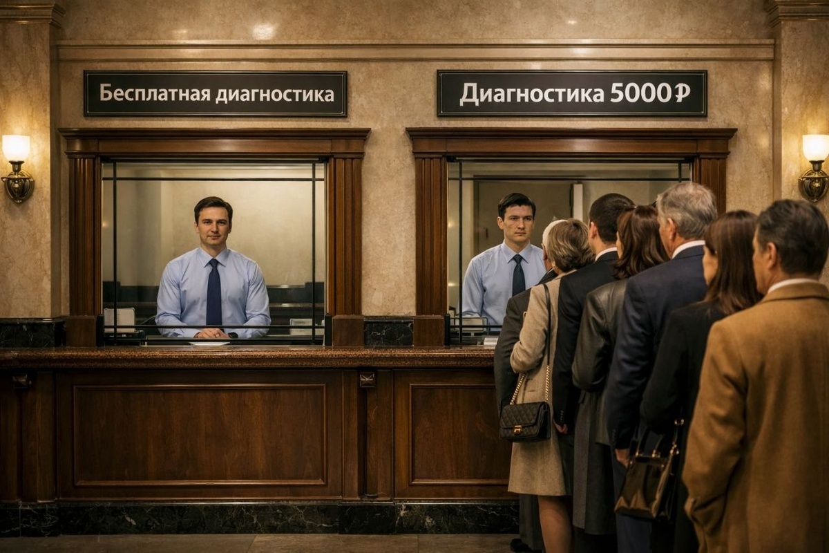 До марта у меня была конверсия 90%. Каждые 9 из 10 человек, которые приходили на бесплатную встречу, покупали индивидуальную работу. Казалось бы — зачем что-то менять? Мне объяснил это один опытный коуч. Он посмотрел на мою схему и сказал примерно следующее: «Данил, ты не проводишь диагностику. Ты проводишь продающую встречу. Это работает — но это слишком дорогой способ продавать». Я сначала не понял. А потом дошло. На бесплатной встрече я смотрел анкету, знакомился с человеком и рассказывал про продукт. Проблему клиента на встрече не решал — просто показывал, что смогу её решить. Полчаса моего времени и времени клиента, чтобы убедить человека заплатить. Это и называется продажа. Ничего плохого в этом нет. Просто я использовал инструмент не по назначению — это как забивать гвозди микроскопом. Когда я сделал диагностику платной — изменилось несколько вещей. Первое: фильтр. Человек, который заплатил 5 000₽, уже до встречи принял решение, что я ему подхожу. Он пришёл не «посмотреть