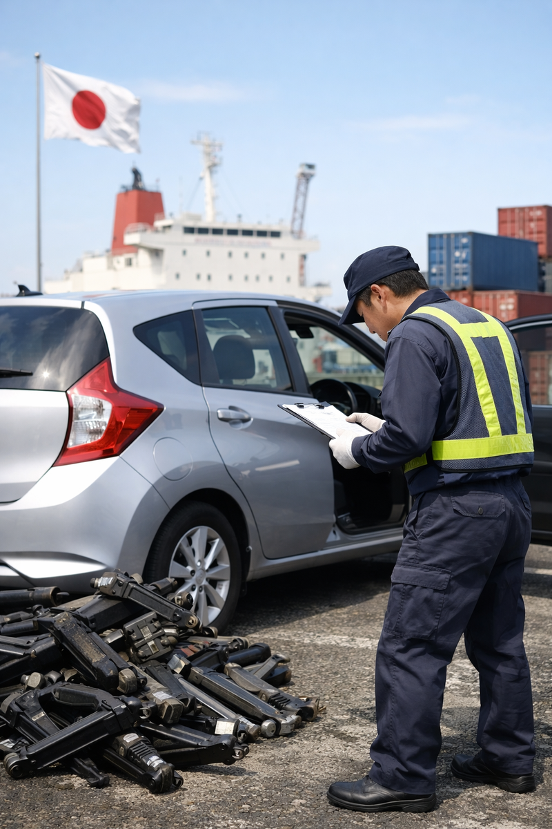 Иногда при получении автомобиля из Японии клиенты обращают внимание, что в машине нет домкрата, баллонного ключа или ремкомплекта Это не связано с состоянием автомобиля — причина в правилах экспорта Перед отправкой все автомобили проходят обязательный осмотр в порту