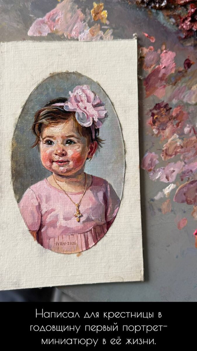 Я вижу, как в её глазах ещё не отделены свет от тени, но в них уже плещется целая вселенная. Я помню тот миг, когда держал её на руках у купели: она была легче кисти, но тяжелее всех мольбертов, потому что на этих руках рождалась душа. Для меня, творческого человека, крестный — это роль со-творца, тот, кто замечает красоту там, где другие проходят мимо. Я буду тем, кто научит её видеть мир как большое незаконченное полотно, где даже хаос можно обуздать гармонией. Поэтому я не дарю игрушки, которые сломаются, или платья, из которых она вырастет. Я хочу подарить ей картину — первый в её жизни диалог с вечностью, где нет ни одного лишнего мазка. Когда она вырастет и спросит, что такое любовь, она посмотрит на этот холст и поймёт: любовь — это когда другой человек тратит своё время, чтобы навеки остановить твой первый год. В этой картине — всё моё обещание быть рядом, даже когда слова закончатся. С днём рождения, маленькая муза: я написал тебя в своём сердце раньше, чем на холсте.