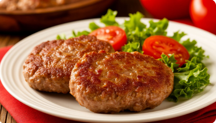 Оптимальное сочетание для котлет — говядина и свинина в равных долях. Говядина даёт насыщенный вкус, а свинина — мягкость и сочность за счёт жира. Идеальная жирность фарша — около 20–25%.