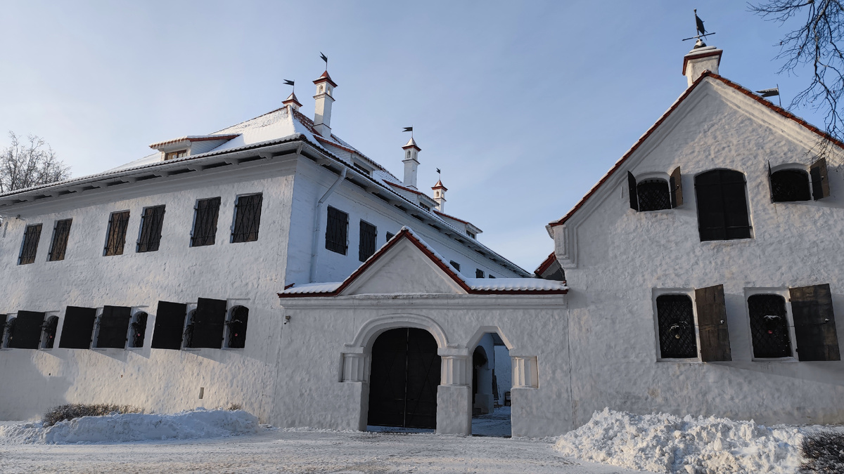 Зимой он особенно хорош: белый снег, темные стены, спокойная линия реки, и над всем этим — Троицкий собор. Белый, высокий, спокойный, он виден из разных точек города и постоянно возвращает взгляд к себе. На территории Крома легко задержаться дольше, чем планировал: пройти вдоль стен, постоять у смотровых точек, посмотреть на слияние рек Псковы и Великой. Зимой все это воспринимается особенно ясно, без визуального шума.