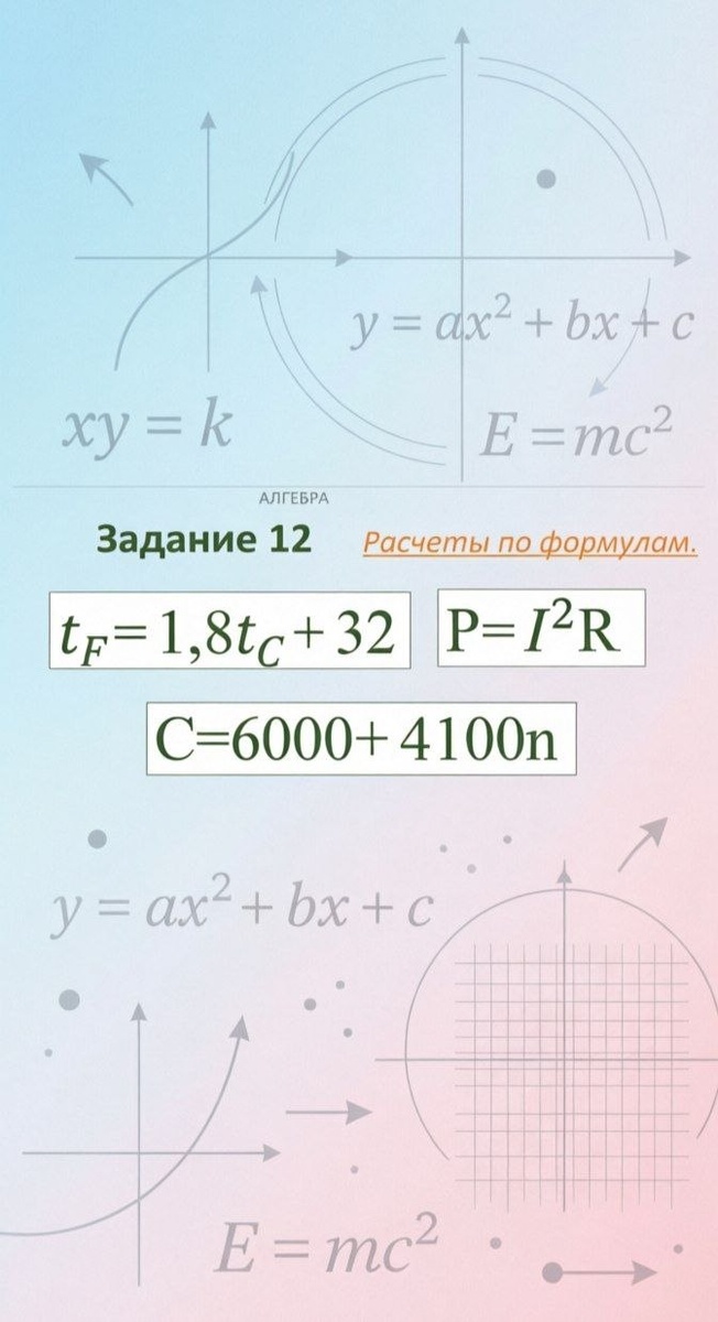 Задание №12 в ОГЭ по математике — это вычисления по формулам. Вам дают готовую формулу из физики или геометрии, подставляют числа и просят найти неизвестную величину. Казалось бы, просто подставь и посчитай. Но именно здесь даже хорошисты теряют баллы. Почему? Потому что путают единицы измерения, неправильно выражают неизвестное и забывают про порядок действий.