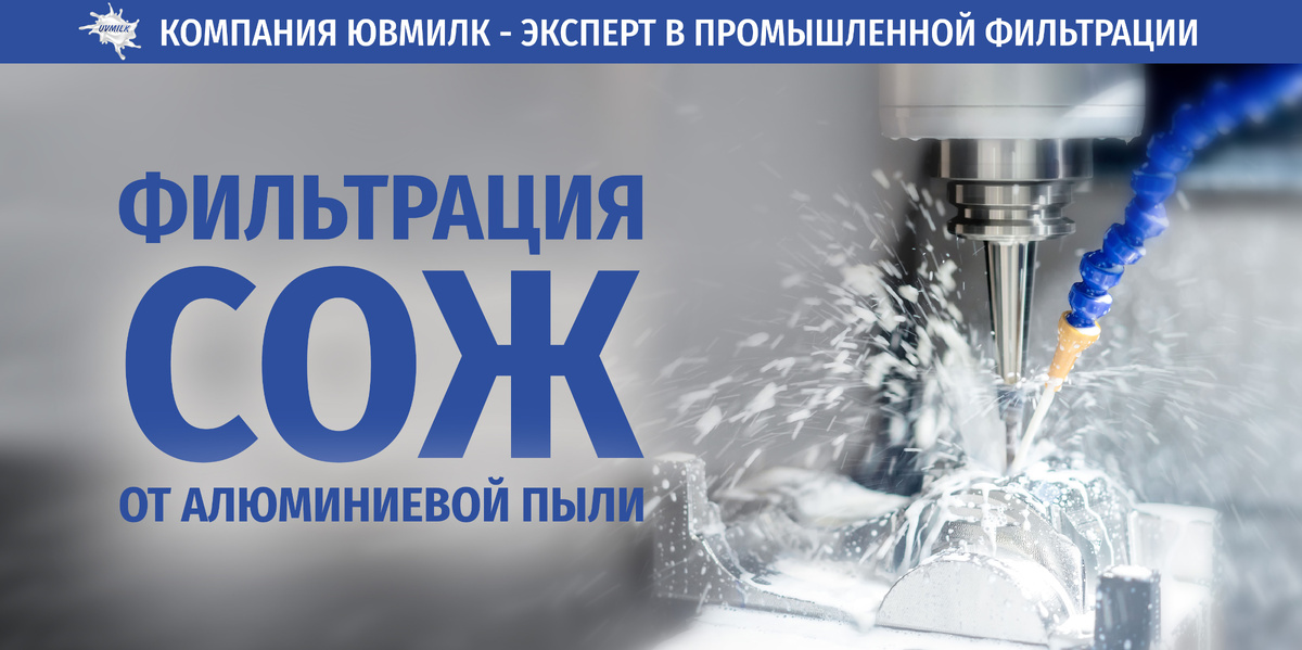 механической обработки алюминиевых сплавов. Мелкодисперсная стружка-пыль напрямую влияет на качество обработки поверхности, вызывая налипание на инструмент (наростообразование), что снижает точность резки, повышает шероховатость и износ режущих кромок. К тому же загрязненная алюминием эмульсия значительно хуже обеспечивает теплоотвод из зоны резания. Фильтрацию СОЖ мы рекомендуем производить в несколько этапов: 1 этап: Магнитный фильтр UVMILK® как предочистка, устраняющая крупную стружку, образовавшуюся при истирании сверл и фрез. 2 этап: Фильтр UVMILK® с тонкостью очистки 1 микрон, устраняющая мельчайшую пыль. Экспериментальная фильтрация СОЖ с применением фильтров UVMILK® наглядно показала свою эффективность. Загрязнения в виде мельчайшей пыли осели на внешних слоях фильтрующего элемента, а на выходе из фильтра мы