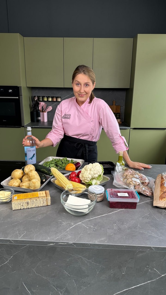 Использую заготовки, которые сделала в рамках челленджа: ✨ Утиные окорочка су-вид (основное блюдо, буду подавать с овощным пюре) ✨ Филе тунца су-вид (заготовка для брускетт) ✨ Паштет и вишневый конфитюр (обалденная закуска, сервируется за 2 минуты — и ты тусуешься с гостями вместо того, чтобы стоять у плиты) ✨ Зелёный соус (заправка для салата) Дополняю этот набор свежими овощами (картошка, капуста, цукини, кукуруза, томаты, лук, зелень) и базовыми продуктами (хлеб, сыр, масло). Начинаю собирать стол с закусок, параллельно запекаю кукурузу для салата и отвариваю овощи для пюре. Показываю праздничный стол, который я собрала полностью из заготовок. Здесь 2 холодные закуски, салат, основное блюдо с гарниром и лимонад. На все я потратила 25 минут и 1000 рублей: - Паштет и вишневый конфитюр: достаю из заготовок и сервирую. - Салат с кукурузой и цукини: запекаю кукурузу в пергаменте 15 мин, нарезаю сырой цукини на слайсы овощечисткой, дополняю салат зеленым соусом. - Брускетты с тунцом и том