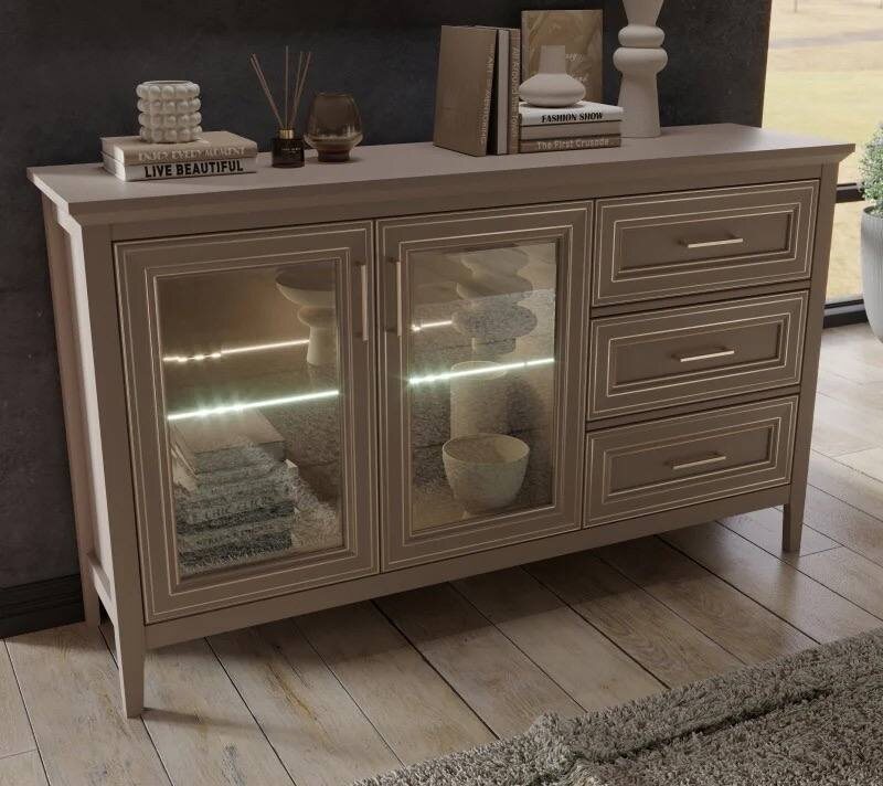 Тумба-витрина с подсветкой Классик глиняный серый в наличии