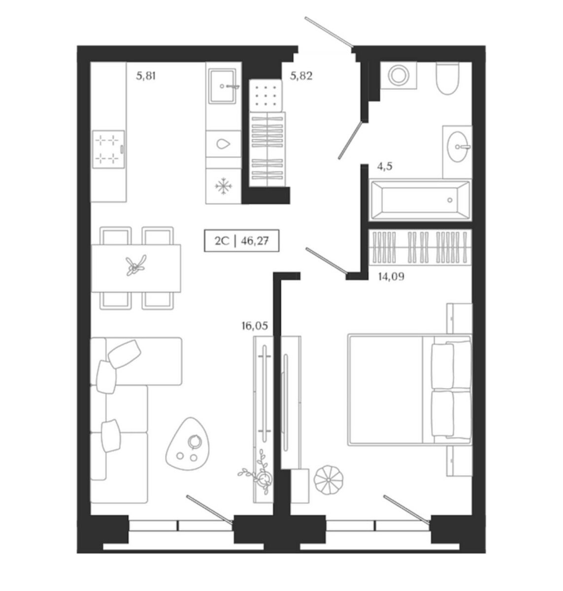 Двушка студия в доме бутике Unity Center - 11230 000 р
