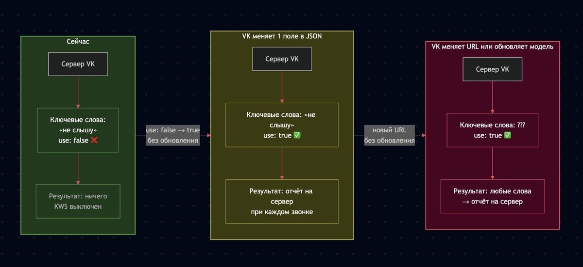 MAX ВАС ПРОСЛУШИВАЕТ Мессенджер не только контролирует, где ты и есть ли у тебя ВПН, но и следит за звонками через нейронку 🗣 Сейчас она срабатывает на фразу «Не слышу» и отправляет данные на сервер ВК А в любой момент ключевые слова можно поменять 🤝 Но тем, у кого дома Яндекс Алиса, беспокоиться не о чем. Их давно слушают UPD: пресс-служба МАХ подтвердила наличие подобных инструментов, но заявляет, что они используются исключительно для обезличенного повышения качества звонков. ➖➖➖➖➖➖➖➖➖ 🍽 Червоточина