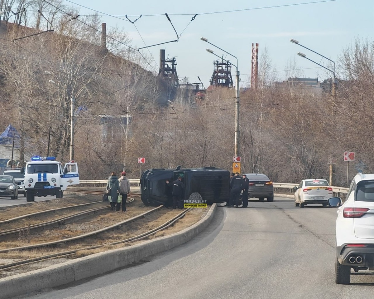 Внедорожник вылетел на трамвайные пути и перевернулся в Нижнем Тагиле