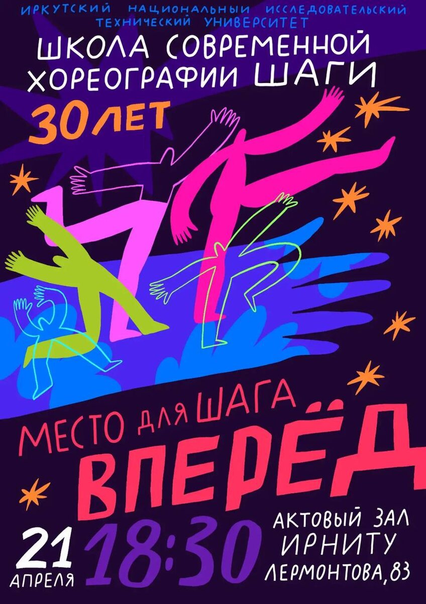 »! Вас ждет магия современного танца, где музыка, свет и сценография погружают в атмосферу свободы и творчества. 🗓 Когда: 21 апреля ⏰ Время: 18:30 📍 Где: Актовый зал Иркутского политеха В программе: • Лучшие номера репертуара за последние 5 лет; • Работы приглашённых постановщиков и иркутских мастеров; • Выступления педагогов — выпускников «Шагов»; • Участие творческих коллективов Центра культурно-массовой работы ИРНИТУ. «Место для шага вперёд» — это стремление к новым вершинам, сохранение традиций и движение только вперёд! До встречи в актовом зале! 👻 МАХ | 💙 ВК | 📝 ДЗЕН