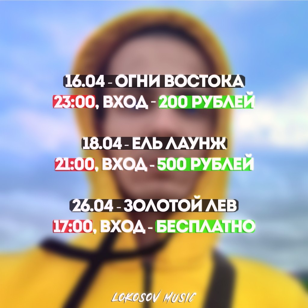 16.04 - Огни Востока, 23:00 - "ЧЕТВЕРГ В ОГНЕ" ВХОД - 200 рублей, ул. Садовая улица, 3 18.04 - Ель Лаунж, 21:00 - "Литературный Квартал" ВХОД - 500 рублей, ул. Огаркова 2Д 26.04 - ЗОЛОТОЙ ЛЕВ, 17:00 - "Хочу и пою!" ВХОД - Бесплатно, ул. Береговая-Краснокаменская, 31а/1