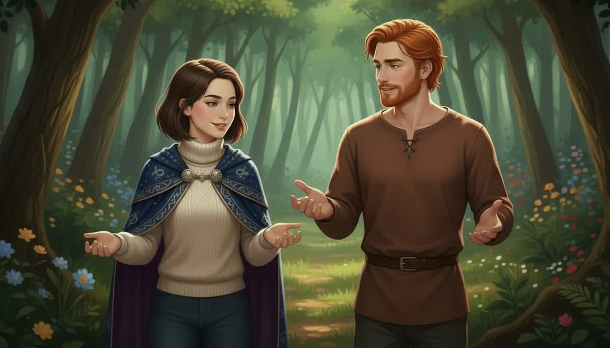 Лес начался сразу за садом. Не как в её мире — постепенно, с опушки и редких деревьев, — а резко: только что был ухоженный парк, и вот уже огромные стволы, сплетённые корни, серебристые листья над головой и мягкий, влажный воздух, пахнущий мхом и чем-то сладким.