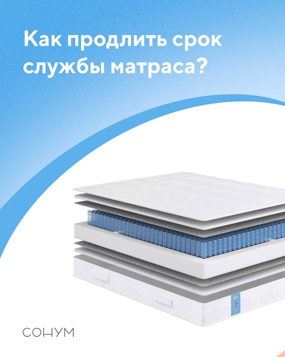 И немного заботы поможет сохранить его на долгие годы 👇 1️⃣ Переворачивайте матрас каждые 3–6 месяцев, чтобы нагрузка распределялась равномерно; 2️⃣ Используйте защитный чехол — он продлит срок службы и сохранит свежесть; 3️⃣ Регулярно проветривайте матрас, чтобы он «дышал»; 4️⃣ Выбирайте основание с ламелями — от него зависит не только комфорт, но и долговечность матраса. Такие простые советы помогут продлить срок службы матраса. А если вы решили купить новый, переходите по ссылке 🔗 sonum.ru