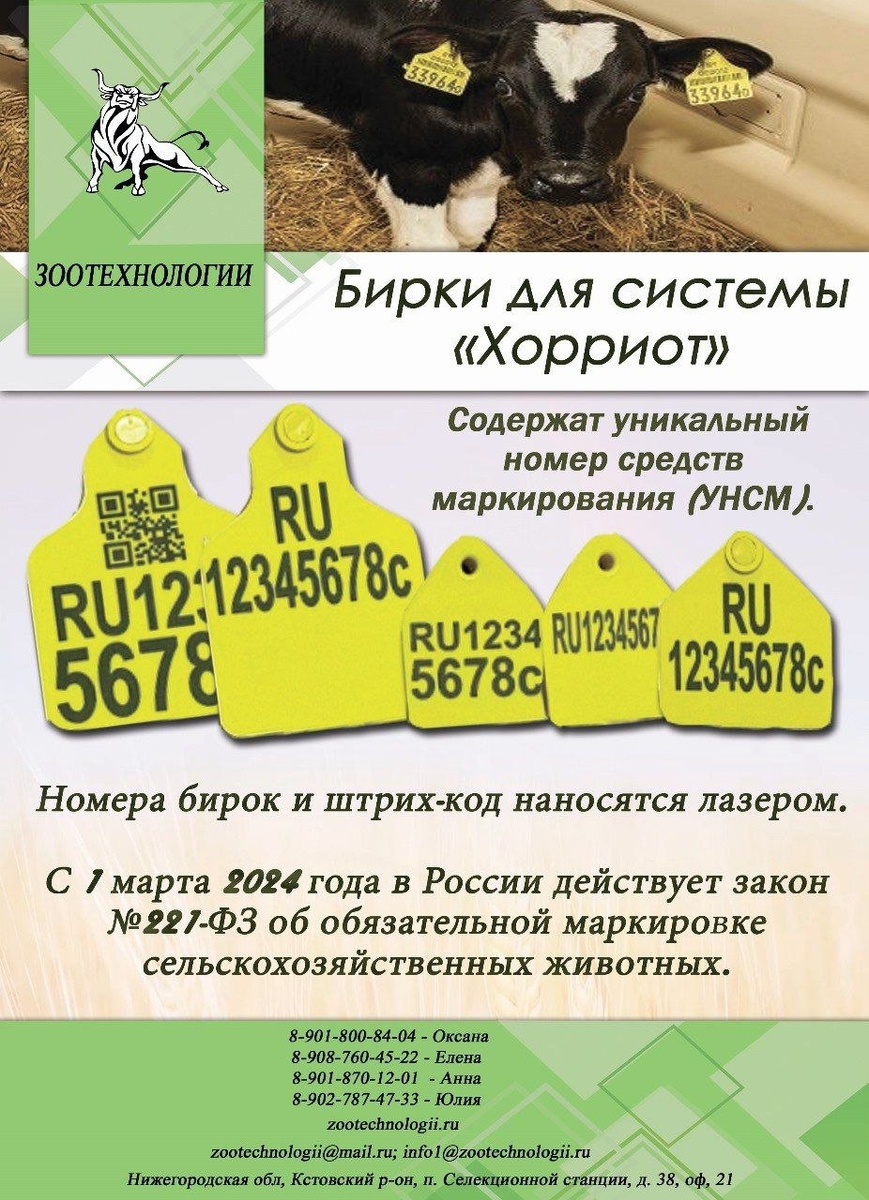 🔖 В продаже бирки для скота в системе «Хорриот», которые используются для идентификации и учёта сельскохозяйственных животных.
