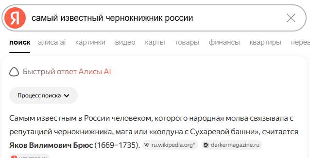 Задал Алисе вопрос: самый известный чернокнижник России?