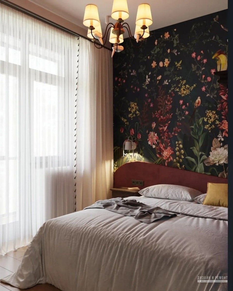 Интерьер от дизайнера Никита Кожуховский @nikita__designer выполнен в стиле современной эклектики с элементами романтизма. Главным акцентом являются обои за изголовьем кровати из коллекции #Exclusive@affrescoru (арт. AB300-COL1) Это не просто узор, а полноценное художественное панно на темном фоне. Крупный, детально проработанный флористический рисунок в стиле «голландского натюрморта». Садовые цветы (лилии, колокольчики, розы) и даже птиц, что придает комнате глубину и загадочность. Спальня выглядит очень камерно и характерно. Это пространство для тех, кто любит глубокие цвета и хочет превратить зону отдыха в личное убежище, защищенное от внешнего мира. - Посмотреть фрески, обои и ткани можно в нашем интернет магазине. 📞 8-800-555-31-51 📨 Salon@affresco.ru 🌏 affresco.ru ⏰ Срок изготовления от 5 раб дней ✈️ https://dzen.ru/id/5f710c51fe660a4af44007cb 🔹️ vk.com/affrescoru - #affrescoru #affresco #аффреско #фрески #обои #фотообои #обоидлястен - 💙Присоединяйся к каналу по ссылке: ht