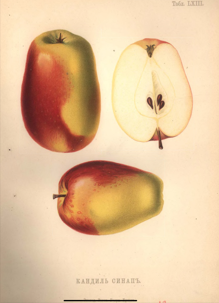 Происхождение и распространение Кандиль Синап — знаменитый старинный аборигенный сорт Крыма. Его точное происхождение неизвестно, но предполагается, что он возник как случайный сеянец другого крымского сорта — Сары Синапа. Название «Кандиль» в переводе с татарского означает «лампада» — сорт назван так за невероятную красоту вытянутых, ярко сияющих карминным румянцем плодов, висящих на ветвях подобно гирляндам лампад. Исторически сорт выращивался в промышленных масштабах исключительно в Крыму(особенно славились сады Карасубазара, долин рек Альмы и Качи). За пределами полуострова (например, в Киевской или Подольской губерниях) он встречался редко, только в садах энтузиастов-помологов. Синонимы:Kantil Sinap.
