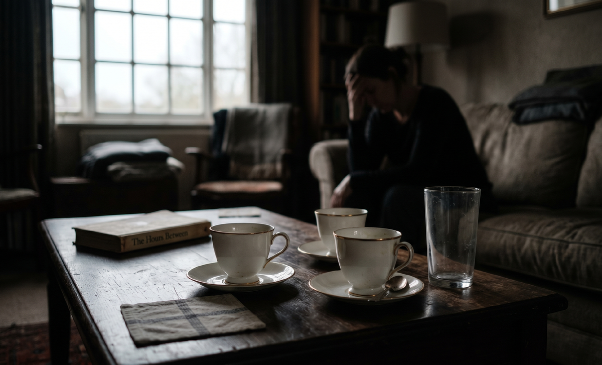Она посмотрела не на него — на пустой стакан у дивана. Потом на чашки с золотой каёмкой.