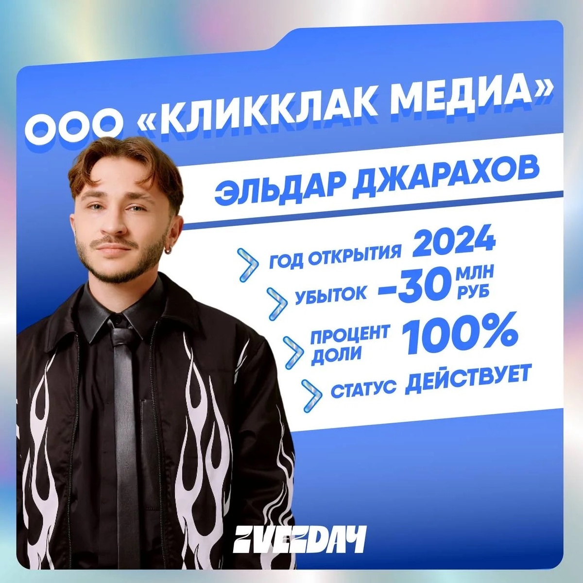 Теперь переносимся в суровый мир налоговой и отчетности. ООО «Кликклак Медиа» зарегистрировали только в апреле 2024 года в Москве. То есть легендарный бренд, существующий больше десяти лет, юридически оформился буквально вчера. Единственный владелец компании — Эльдар Джарахов.