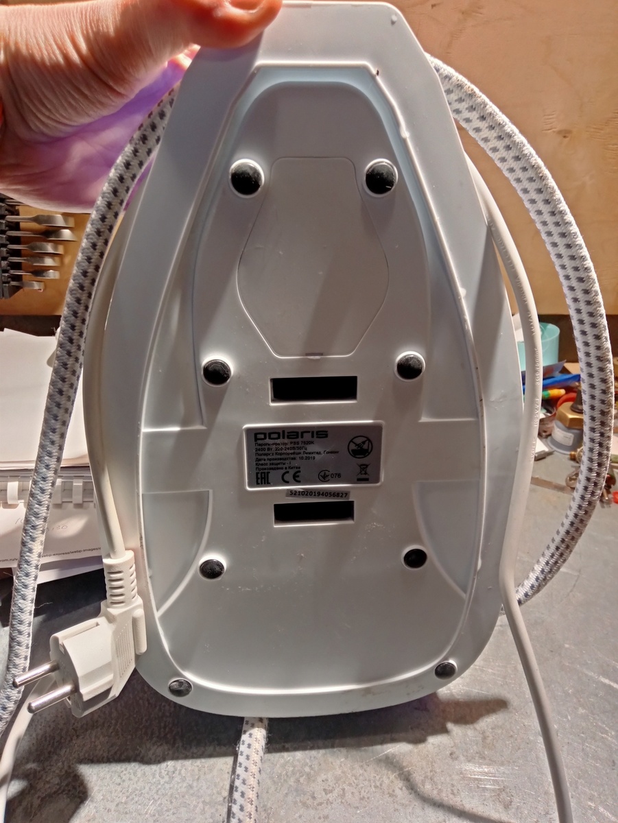 Поставили мне тут задачу, что надо отпариватель починить, т.к. парить перестал. Дома ковыряться было не охота, потому взял на работу. Фоток тут кстати не так много будет, т.к. весь процесс снимать было лень, да и особого смысла нету. Т.к. думаю неисправность типичная для отпаривателей а моделей множество. Для начала я включил отпариватель, чтобы понять в чём там вообще дело. Пар шел как-то совсем не охотно, плюс насос как-то странно подвывал. Одним словом без вскрытия никак. В данной модели сделать это не сложно, снимаются резиновые заглушки, они же ножки и под ними болты. Снизу кстати есть ещё лючок, правда накой он сдался я так и не понял. Ну если только остатки воды можно слить, сняв шланг с насоса. Но воду и так можно вылить. Дальше отсоединяются 2 шланга. Они просто натянуты на штуцера. Наша цель вот эта пипка. Через которую вода идёт на насос. Откручиваем её а под ней пипка поменьше. Снимаем резинку и под ней видим причину того, что вода не идёт. Сеточка забита грязью. Очист