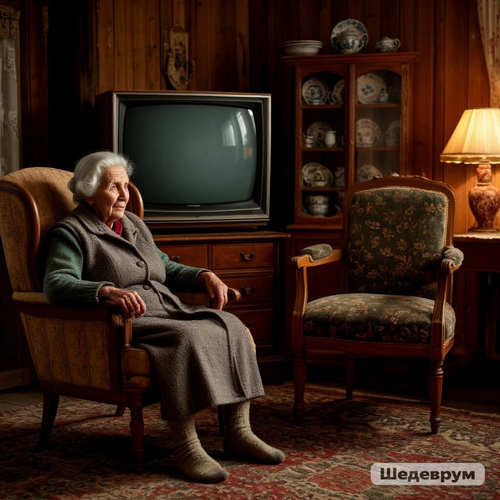 Мария Ильинична ушла в большую комнату, где был старенький телевизор, прикрытый вязанной белой салфеткой, стояли диван, два кресла с деревянными подлокотниками и сервант с посудой.