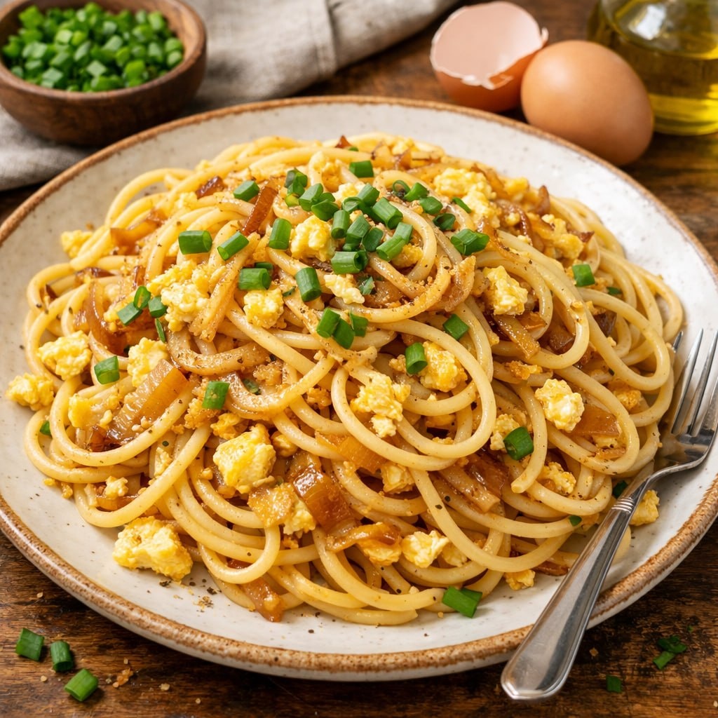 Ингредиенты: Макароны — 180 г Лук — 1–2 шт. Яйца — 2 шт. Растительное масло — 2 ст. л. Соль, чёрный перец Как делает Гаврила: Макароны сварил. Лук обжарил до золотистости. Добавил яйца, быстро перемешал. Вмешал макароны, посолил и поперчил. Простое сочетание, но работает на удивление хорошо.