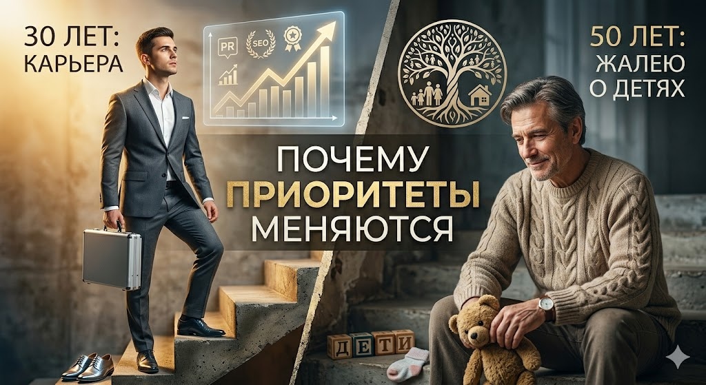 В 30 мечтал о карьере, в 50 жалею о детях, почему приоритеты меняются.